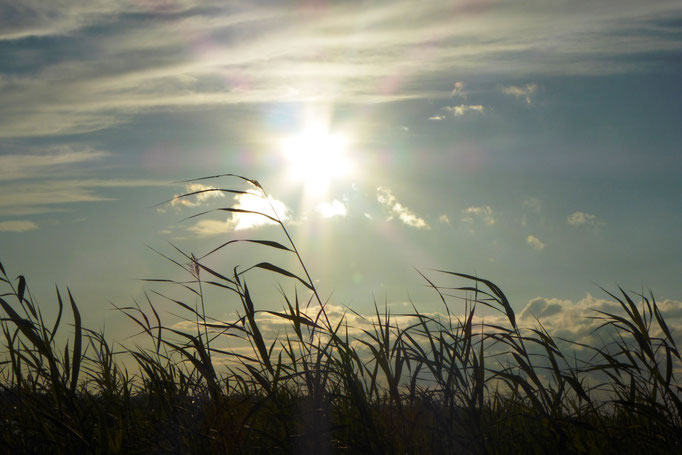 In der Bucht vor dem Haus mit Schilfzonen